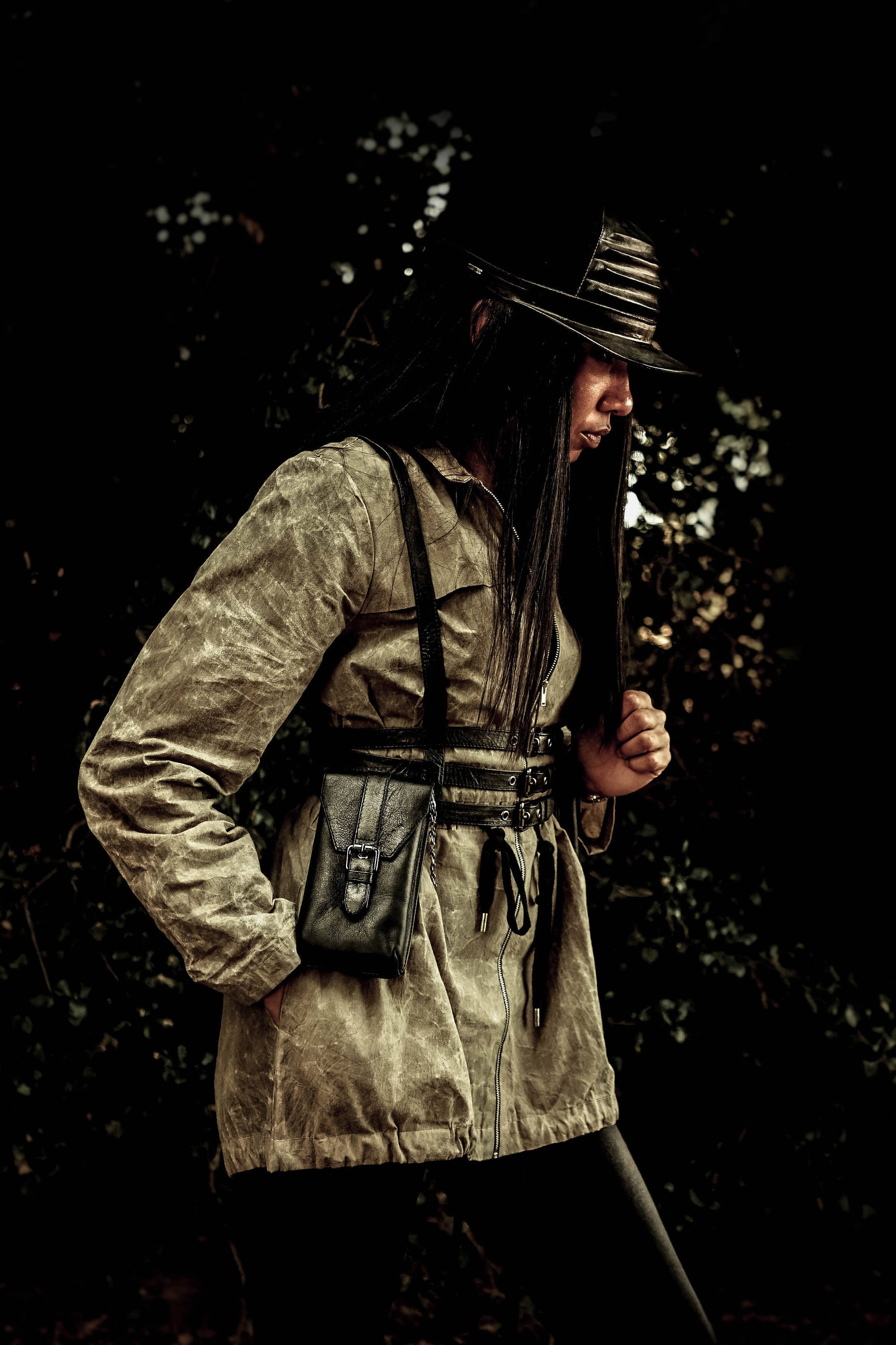 TRIPLE THREAT Black Leather Body Harness w/ Convertible Wallet Pockets